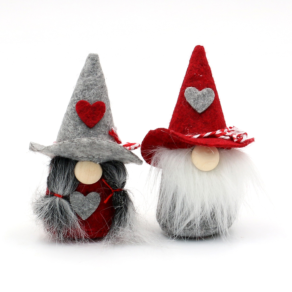 Textile gnome gray/red with individual logo 2-asst 5,5 x 5,5 x 10 cm